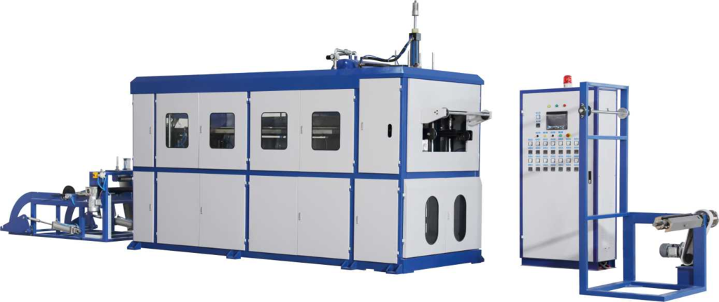 2.整機集送片、加熱、拉伸、成型、切邊一次性完成。
